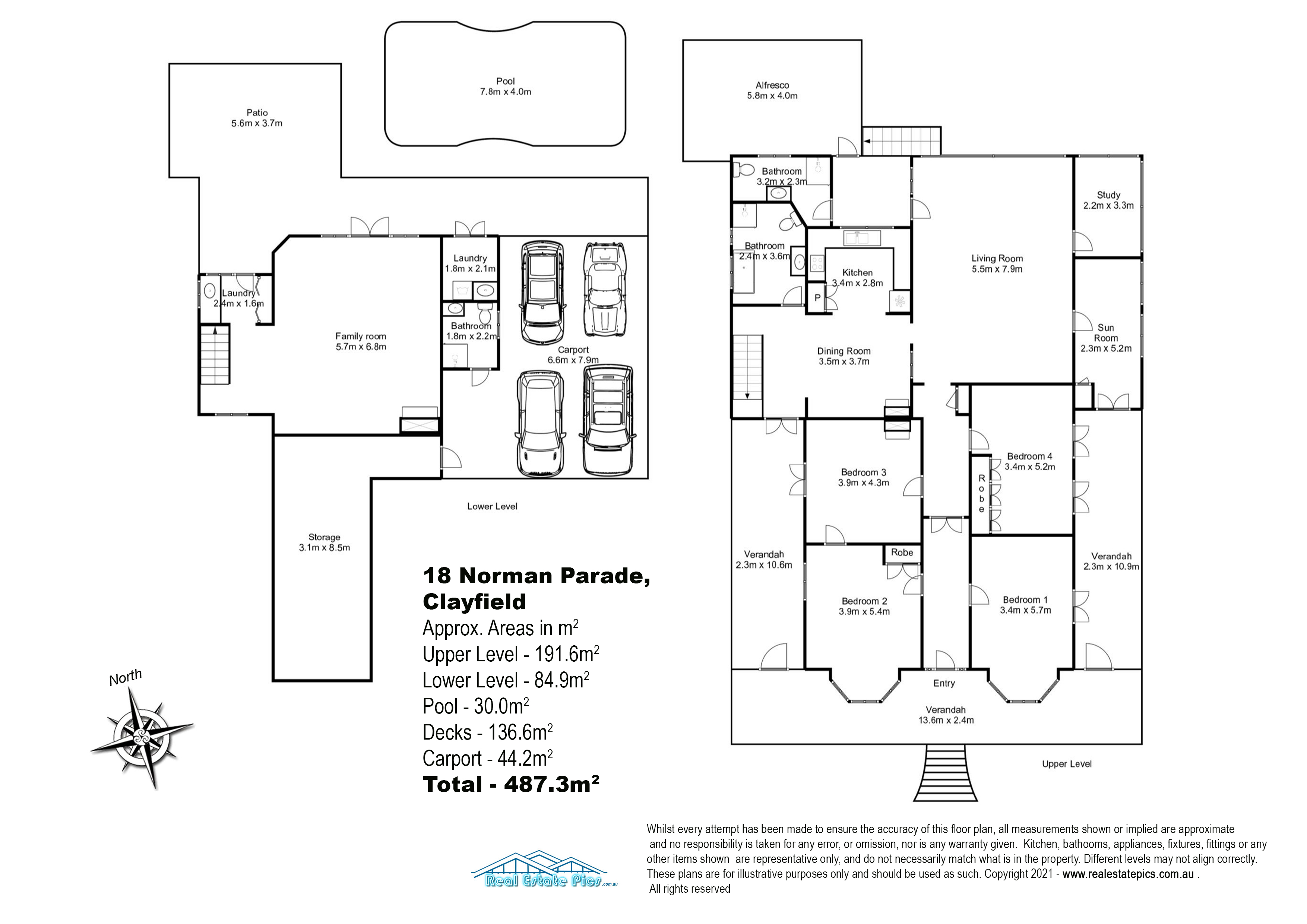 An internal staircase near the casual family dining room leads past the traditional bathroom, down to a tiled family/rumpus room that features another beautiful fireplace. It flows to the rear entertaining terrace that overlooks the pool.