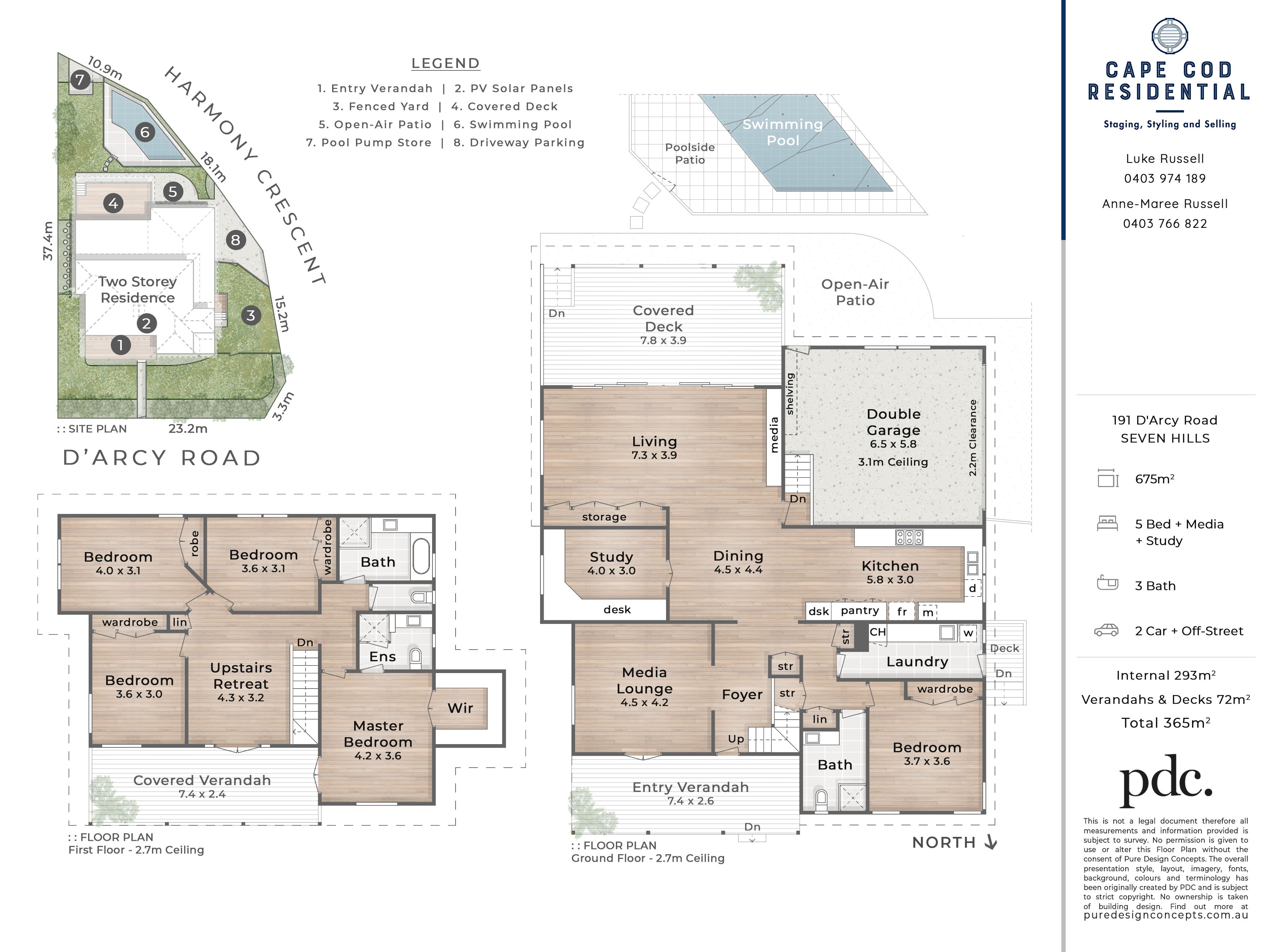 * Versatile living spaces with open plan family living flowing to rear deck, separate media room/formal living, home office and upstairs retreat, front decks on both levels