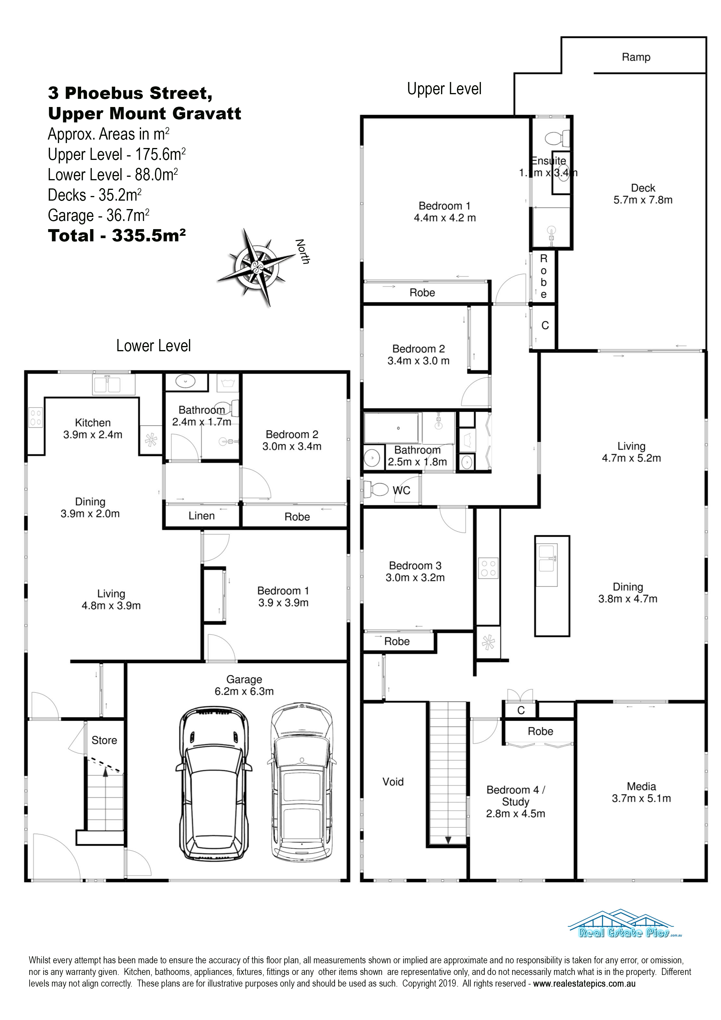 • 3-4 bedrooms/study/ on the upper level, 2 bedrooms on the lower level